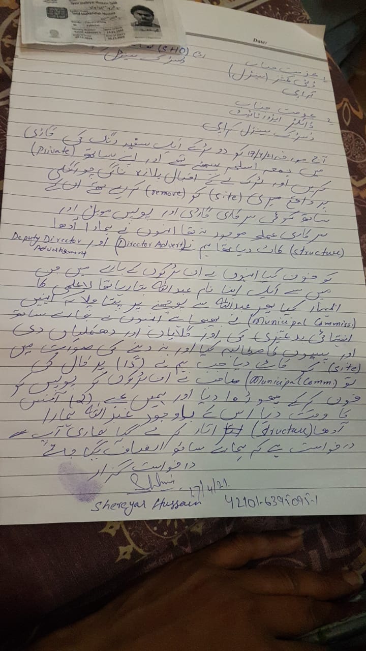 اس سلسلے میں شہریار ایڈورٹائزر نے نے ڈپٹی کمشنر سینٹرل کو ایک تحریری شکایت بھی جمع کرائیں ہے۔