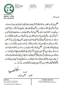 صحافتی تنظیمیں قانونی راستہ اختیار کریں گی . اور ممکنہ واقعہ میں‌ ملوث افراد کو بے نقابنیشنل پریس کلب کل اسلام آباد کیا جائے گا.