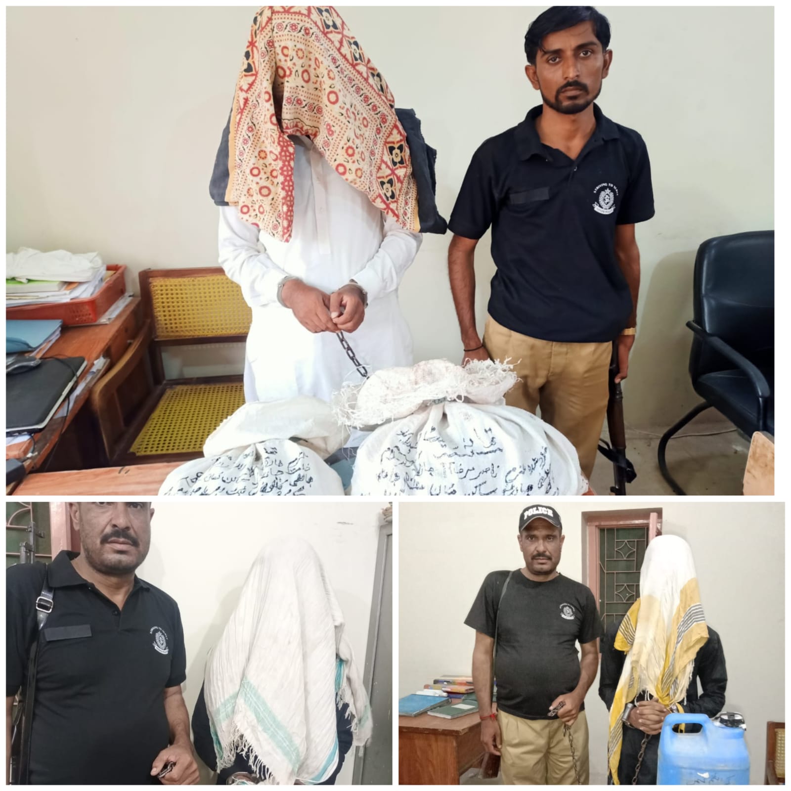 دوران پیٹرولنگ مخفی اطلاع پر تھانہ حدود میں چھاپہ مار کاروائیاں کرتے ہوئے 3 ملزمان کو مین پوری و انڈین گٹکا، شراب اور چرس فروخت کرتے ہوئے رنگے ہاتھوں گرفتار کرلیا