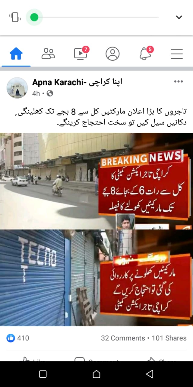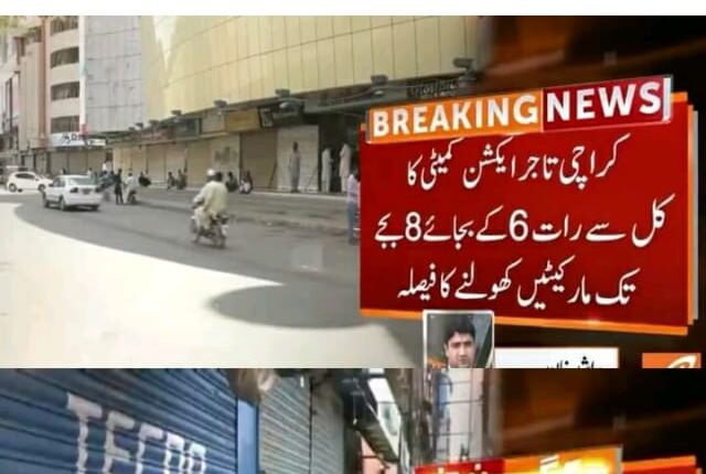 تین دن پہلے تاجر ایکشن کمیٹی نے آٹھ بجے تک بھر کے کھولنے کا حکومت سندھ سے مطالبہ کیا تھا