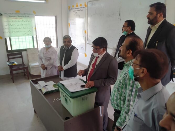 کراچی (پ ر)ترجمان دفتر صوبائی الیکشن کمشنر سندھ کی جانب سے جاری کردہ بیان کے مطابق ضمنی انتخاب برائے این اے 249 کراچی غربی۔II میں پریذائیڈنگ افسران اور سینئر پریذائیڈنگ افسران کی تربیت کا آغاز گورنمنٹ ٹیکنیکل کالج سائٹ میں کردیا گیا ہے۔ اِس موقع پر صوبائی الیکشن کمشنر سندھ جناب اعجاز انور چوہان نے محترم چیف الیکشن کمشنر سکندر سلطان راجہ کی خصوصی ہدایات کے مطابق ٹریننگ سینٹر جوکہ 5کمروں پر مشتمل تھا کا دورہ کیا۔ اِن کے ہمراہ سید ندیم حیدر، ریجنل الیکشن کمشنر کراچی/ ڈسٹرکٹ ریٹرننگ آفیسر، محمد سجاد خٹک، ڈسٹرکٹ الیکشن کمشنر کورنگی/ ریٹرننگ آفیسر این اے 249 کراچی غربی۔II، عبدالرحمن آرائیں، ریجنل الیکشن کمشنر شہید بینظیر آباد/ ڈسٹرکٹ مانیٹرنگ آفیسر، محمد یوسف، ڈسٹرکٹ الیکشن کمشنر کراچی سینٹرل/ مانیٹرنگ آفیسر باہمراہ جناب حامد حسین، ڈسٹرکٹ الیکشن کمشنر کراچی غربی، حمیرا بنت معاذ ڈسٹرکٹ الیکشن کمشنر کیماڑی اور اسسٹنٹ کمشنر/اسسٹنٹ ریٹرننگ آفیسر عبدالحنان بھٹو بھی موجود تھے۔