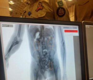 تفصیلات کے مطابق جناح انٹرنیشنل ائرپورٹ کے آرایول ھال پر تعینات کسٹمز کے عملے نے دوران چیکنگ قطر ائرویز کی فلائٹ نمبر Qr 604 سے نائجیریا براستہ قطر کراچی پہنچنے والے دو نائجیرین مسافروں سے کسٹمز کے گرین چینل پر موجود افسران نے ان سے پوچھ گچھ کی تو مسافروں کے بیان سے غیر مطمئن ھونےاور مسافروں کیbody language کی بنیاد پر مسافروں کے پاس موجود سامان اور مسافروں کی مکمل اور تفصیلی جانچ پڑتال کے لئے ان کو کسٹمز ایگزامینیشن کاونٹر پر بھیجا گیا جہاں سامان کی تفصیلی جانچ پڑتال اور سرچ روم میں مسافروں کی باڈی سرچ کی گئی اس دوران مسافروں کی غیر معمولی گھبراہٹ کی بنیاد پرمسافروں کے باڈی ایکسرے کا فیصلہ کیا اور ائرپورٹ کے قریب موجود ہسپتال لے جاکر مسافروں کے باڈی ایکسرے کرائے گئے جس کے نتیجہ میں دونوں مسافروں کے پیٹ میں کافی تعداد میں کیپسولز کی موجودگی کی نشاندہی ھوئی جس پر مسافروں سے اس بارے میں پوچھاگیا تو انہوں نے پیٹ کے اندر موجود کیپسولز میں کوکین ھونے کا اقرارکیا