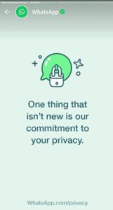 واٹس ایپ کے اپنے سب سے پہلے ’اسٹیٹس‘ میں چار اسکرینز کے ذریعے صارفین کو یقین دلایا گیا ہے کہ ان کا تخلیہ (پرائیویسی) واٹس ایپ کےلیے بہت اہم ہے اور یہ کہ صارفین کے ذاتی پیغامات پڑھے نہیں جاسکتے کیونکہ انہیں ’اینڈ ٹو اینڈ انکرپشن‘ کا تحفظ حاصل ہے۔