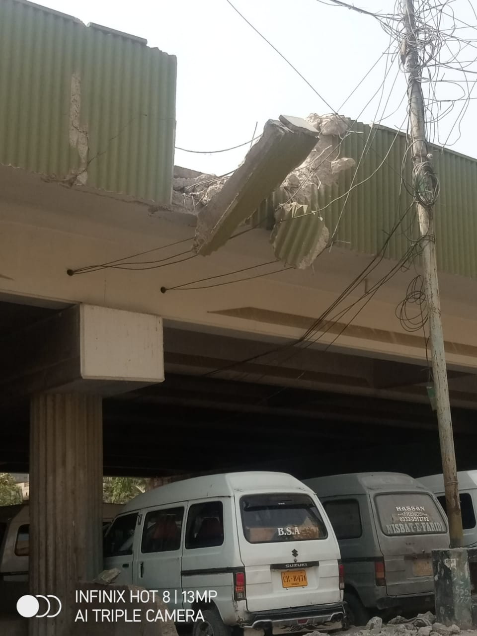 ڈمپر کے گرنے سے بلوچ کالونی فلائی اوور کی سائٹ کی کنکریٹ دیوار ٹوٹ گئی اور ایک بہت بڑا پیس فضا میں لٹک گیا جو آج ایک ہفتہ گزر جانے کے بعد بھی نیچے سے گزرنے والے پیدل لوگوں اور گاڑیوں کے لیے شدید جانی خطرہ بنا ہوا ہے مگر متعلقہ اداروں کےآنکھوں کے سامنے یہ منظر نہیں آ رہا۔؟