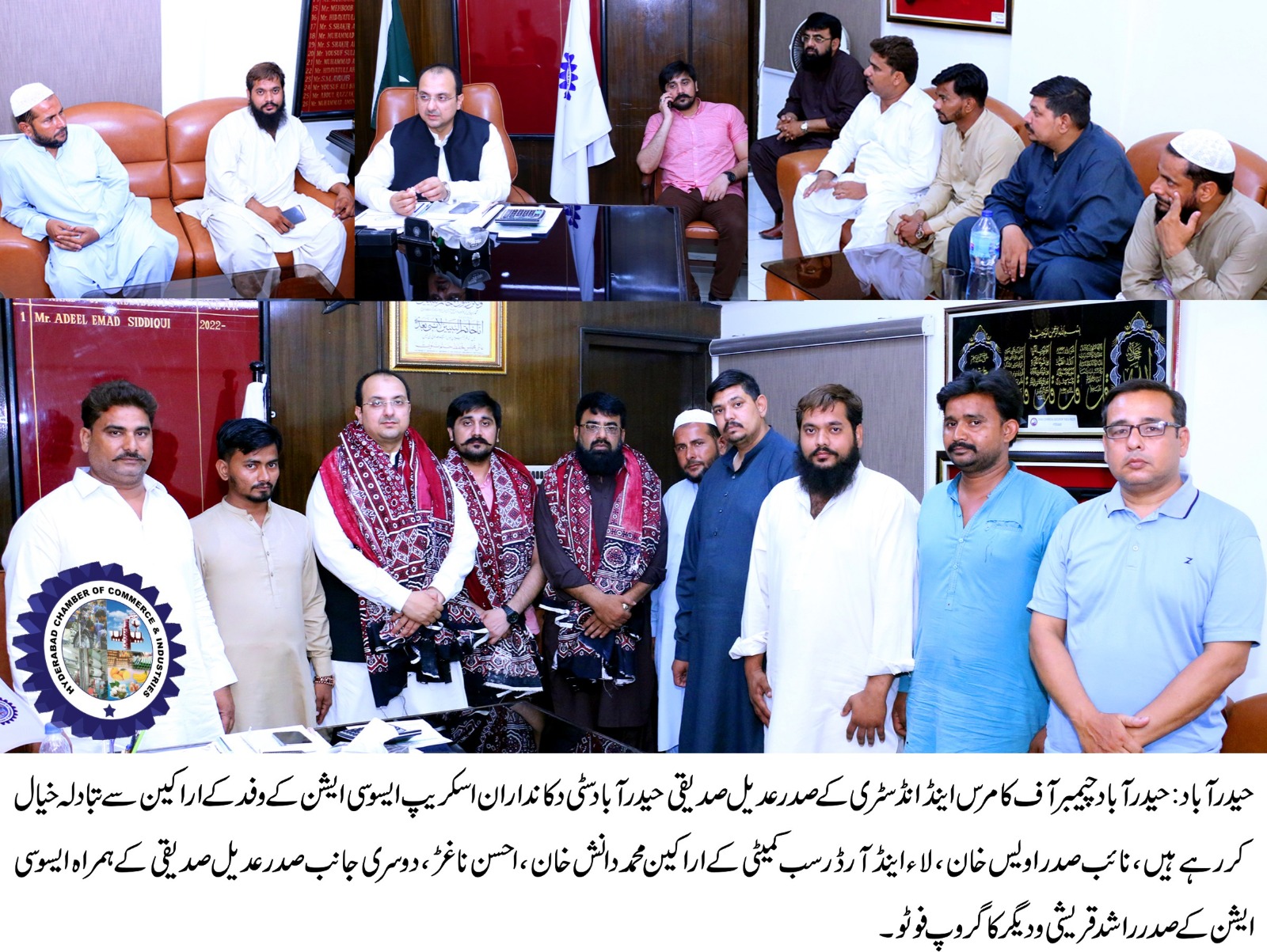 چیمبر آف کامرس اینڈ انڈسٹری کے صدر عدیل صدیقی نے حیدرآباد سٹی دکانداران اسکریپ ایسو سی ایشن کے وفد سے گفتگو