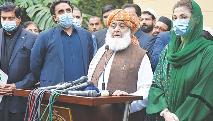 ادھر سے میاں نواز شریف انقلابی بن گئے چنانچہ جمہوریت پسند حلقوں نے پی ڈی ایم سے بڑی توقعات وابستہ کر لیں لیکن اے بسا آرزو کہ خاک شدہ است۔ پی ڈی ایم کی ساخت، جس میں بلوچ اور پختون قوم پرست ایک طرف تھے تو پنجاب اور سندھ کی بڑی جماعتیں دوسری طرف تھیں جبکہ قیادت اسٹریٹ پاور کی حامل جے یو آئی کے مولانا فضل الرحمٰن کے پاس تھی، نے مختصر وقت میں حکومت اور اُس کے سرپرستوں کو ہلاکے رکھ دیا۔