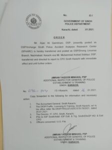 سندھ پولیس کے نام ور ڈی ایس پی اعجاز قائم خانی ڈی ایس پی ڈرائیونگ لائیسینس برانچ ناظم آباد تعینات،واضح رہے اعجاز قائم خانی انٹی کرپشن میں بھی خدمات انجام دے چکے ہیں.