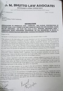 علاقہ مکینوں کے مطابق R101 جو ڈیمالش کرکے دوبارہ تعمیر کیا جا رہا ہے ایک رہائشی پلاٹ ہے جس پر کمرشل تعمیر چل رہی ہے اور طلحہ نامی بلڈر اطراف سے پلاٹ کی حدود سے تجاوز کررہا ہے جس کی وجہ سے الیکٹرک پول شارٹ سرکٹ بھی ہو چکا ہے ادارہ پیمائش کرے اور نہ صرف حدودمیں کروائیں بلکہ کمرشل تعمیرات کو بھی روکے.