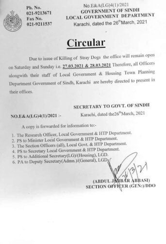 کراچی سمیت سندھ بھر میں کتا مار مہم کا آغاز : سرکلر لوکل گورنمنٹ