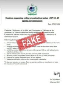 سوشل میڈیا پر آن لائن امتحانات سے متعلق جعلی نوٹیفکیشن پھیلایا گیا-