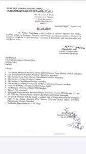 ۔مطہر نیار رانانئےچیف سیکرٹری بلوچستان تعینات: