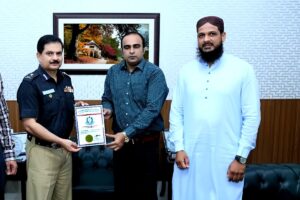 ڈاکٹر جمیل احمد نے انہیں تفصیل سے بریفنگ دی لائزن پولیس کمیٹی کے چیئرمین فاروق سلیمان نے سندھ کی ثقافت اجرک کا تحفہ پیش کیا